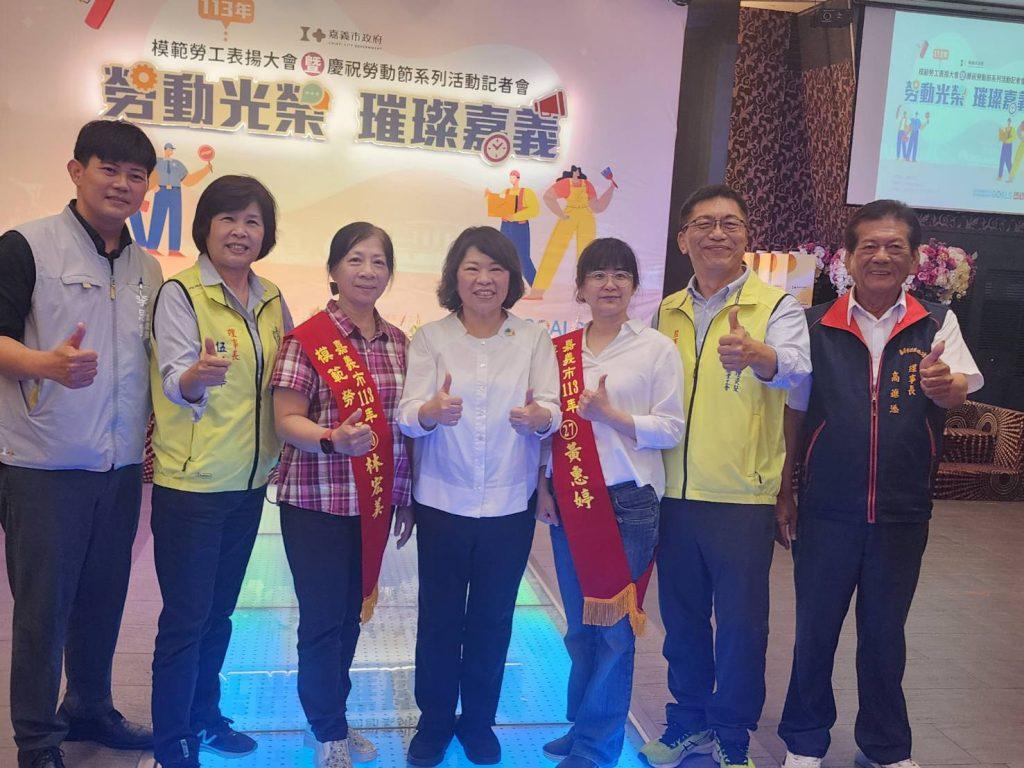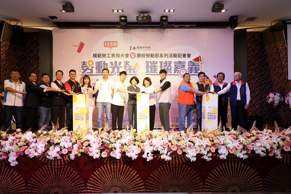 嘉義市政府於今(26)日舉辦113年模範勞工表揚大會暨慶祝勞動節系列活動記者會,宣告五月這個屬於勞工的月份,勞動節系列活動正式起跑,13場超過400個免費參與名額在嘉義市政府社會處FB粉絲專頁開放報名。黃敏惠市長親自表揚58位嘉義市模範勞工,向所有無名英雄致上最高敬意!嘉義市政府社會處李思賢處長、嘉義市議長陳姿妏,市議員林煒軒、李奕德、黃思婷、鄭光宏、王浩…等多位貴賓亦蒞臨出席。