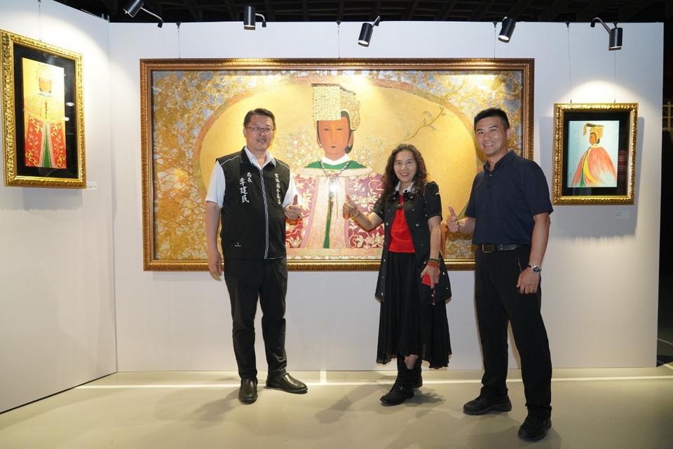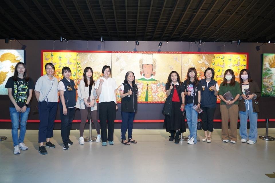 三月迎媽祖,成千上萬的媽祖婆信徒們紛紛湧入雲林來追隨,雲林員警夜以繼日辛勞守護白沙屯、大甲媽及朝天宮媽祖進香安維活動,為感念媽祖駐足保佑及感受雲林濃厚宗教文化底蘊,雲林縣警察局長李建民與警察之友會理事長吳政憲特別於 4月30日下午第十次理監事會議前,帶領一級主管及警友會幹部等70位參觀「媽祖文化藝術饗宴-藝韻繪影」藝術特展,並由參展人蕙子(魏幼惠)親自解說每幅創作。