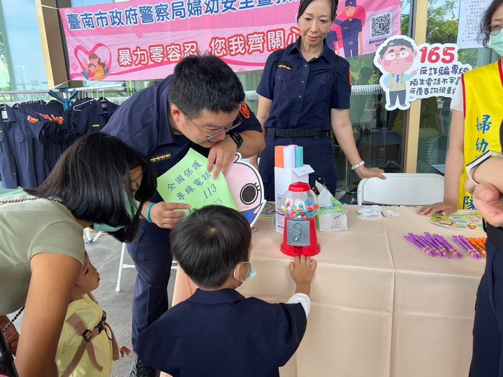 臺南市立圖書館與臺南市政府警察局攜手合作,精心籌劃「2024世界閱讀日—讀的舊是你」feat.「小小警察體驗」活動,除了有各式表演與市集,現場開放親子參加換裝小小警察制服、試穿各式樣警用裝備,例如防彈背心、防彈盾牌、防彈頭盔,騎乘小小警用機車,藉由沉浸式體驗,讓親子了解警察值勤日常,感受警察執勤辛勞及打擊犯罪的責任重擔,再配合反詐、反毒及交通安全等各式主題闖關遊戲,以寓教於樂方式增加小朋友主動識詐、拒毒及注意交通安全學習動機,更提供更多親子同樂的機會,拉近親子間距離,增添更多歡樂的趣味。