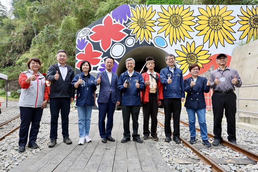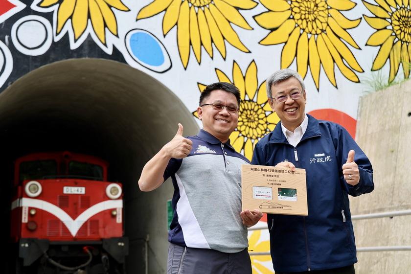 農業部林業及自然保育署阿里山林業鐵路及文化資產管理處【林鐵處】於昨(17)日辦理42號隧道竣工典禮,由行政院陳建仁院長、農業部杜文珍次長、林業及自然保育署林華慶署長、林鐵及文資處黃妙修處長、林業及自然保育署嘉義分署張岱分署長、嘉義縣政府翁章梁縣長、嘉義市政府林建宏參議、阿里山鄉公所高瑞芳鄉長、阿里山鄉鄉民代表會林清良主席、鄒族特富野社汪義福頭目、鄒族特富野社長老阿里山鄉獵人協會高德生理事長、達邦社汪啟德頭目、來吉部落鄭秀琴主席、十字村許瑞文村長及各界代表共同見證歷史時刻。