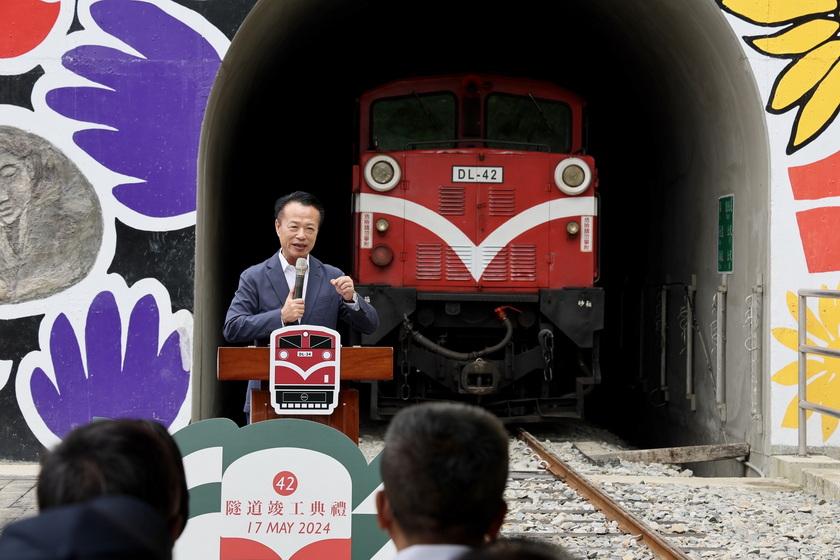 行政院長陳建仁表示,工程人員離鄉背景,每天在濕冷的偏遠山區及暗無天日的隧道內日夜輪班工作,有時候好幾個月沒機會見到家人,感謝所有參與這件工程的施工人員共同打拚。並肯定林鐵處以創新思維,兼具環保與文化保存,並積極處理施工期間遭遇的諸多突發事件,以高環保高品質高效率完成這件42號隧道工程,讓國人期盼已久的阿里山林業鐵路全線通車,終於迎向曙光,並手持無線電話機宣布「42號隧道,正式啟用。」司機員接到指令回復「收到」後,隧道內編號DL-42機關車立即亮燈、鳴笛,獲得來賓的熱烈掌聲。