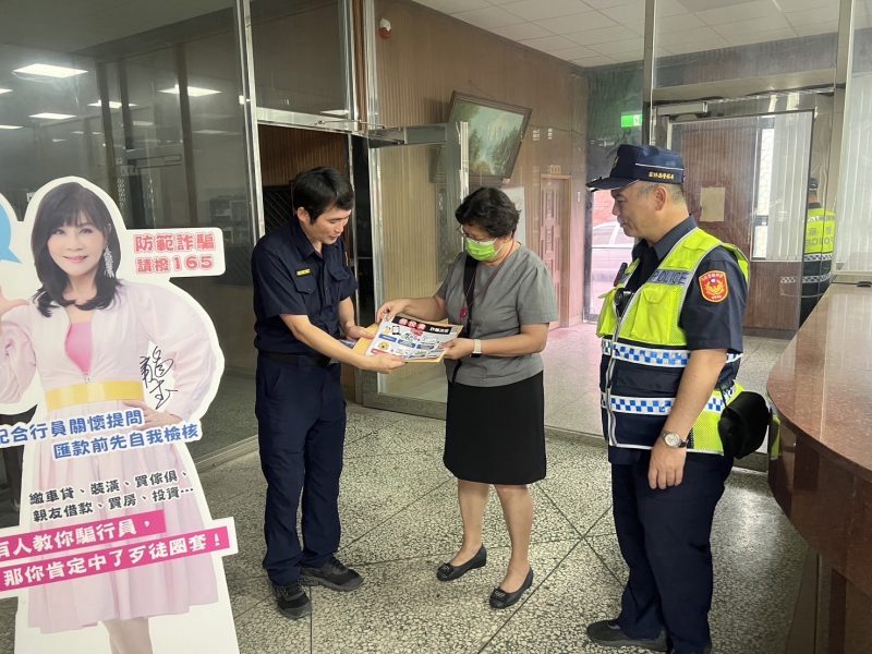 西螺分局分局長閻百川、副分局長李建興、副分局長陳智仁,親自前往轄內22處金融機構向行員及民眾宣導。