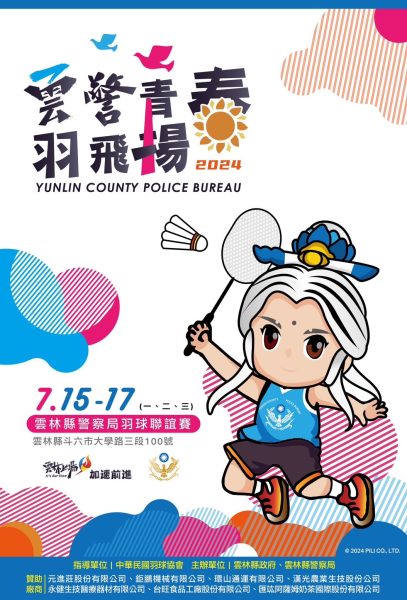 雲林縣警察局 自7/15到7/17一連三天舉辦「2024雲警青春羽飛揚」羽球聯誼賽,邀請全縣學生共襄盛舉,三天賽程分別為國小組、警政組、國高中組,總獎金4萬4千元,各組別獎金不一,第一名獎金最高8千元~