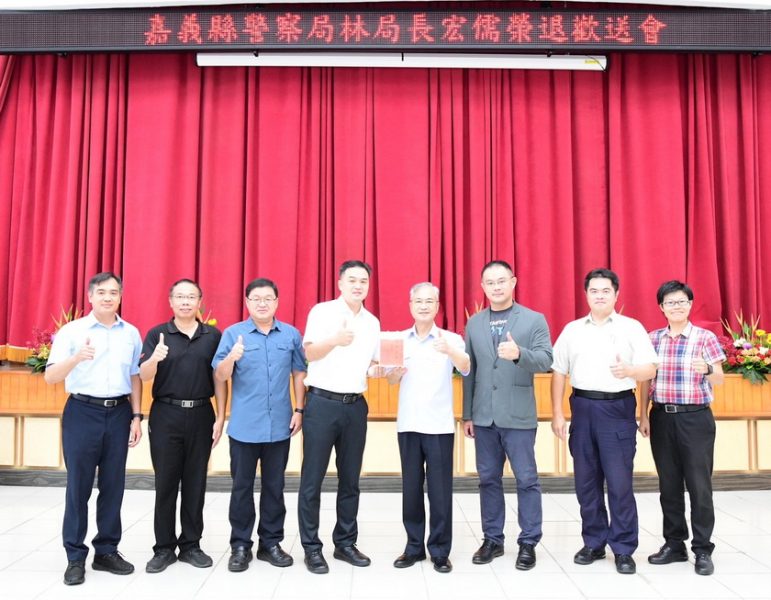 嘉義縣警察局局長林宏儒於本月16日屆齡退休,警察局特別於昨(15)日舉辦歡送會,會中也邀請義警、義交、民防、守望相助隊等協勤民力大隊長及長期支持警察工作警友會、退警協會理事長參加、恭賀林局長屆齡榮退。