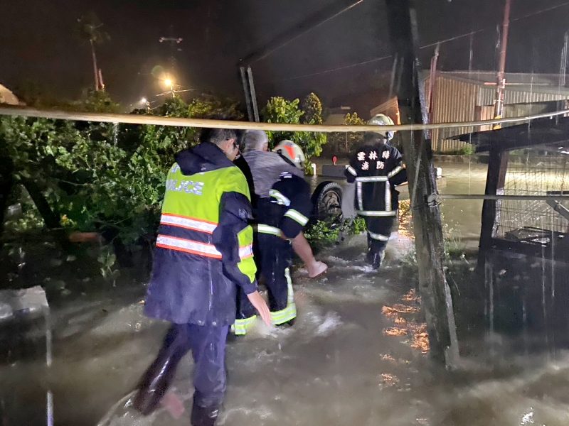 西螺分局接獲通報,崙背鄉水尾村河提旁一間民宅有獨居老人受困,豐榮派出所警員李明展到達時發現水淹房屋約70公分,李員立即進入屋內找尋,發現葉姓獨居婦人在屋內瑟瑟發抖。