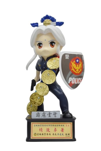 縣長張麗善於8月7日在縣府頒贈重大刑案破案慰勉金,並特別頒發雲林縣警局金牌加身的霹靂雲警公仔-素還真,值星帶上的金牌越多代表案件破越多,以正義與智慧的化身,激勵同仁繼續努力維護社會秩序及公共安全。張麗善表示,感謝警察局團隊在李建民局長的領導下,溫暖且堅定推動為民服務,如為產婦開道送醫、協尋失智長者返家、發掘社會角落的弱勢族群,運用「智慧警政」推動科技執法、護農計畫、雙B關懷弱勢,跨局處運用科技見警、維護治安交通;且近期偵破數起社會矚目刑案、越轄偵破槍砲案、組織犯罪、廢棄物清理法、竊盜集團等案件,即時讓民眾安心與放心。