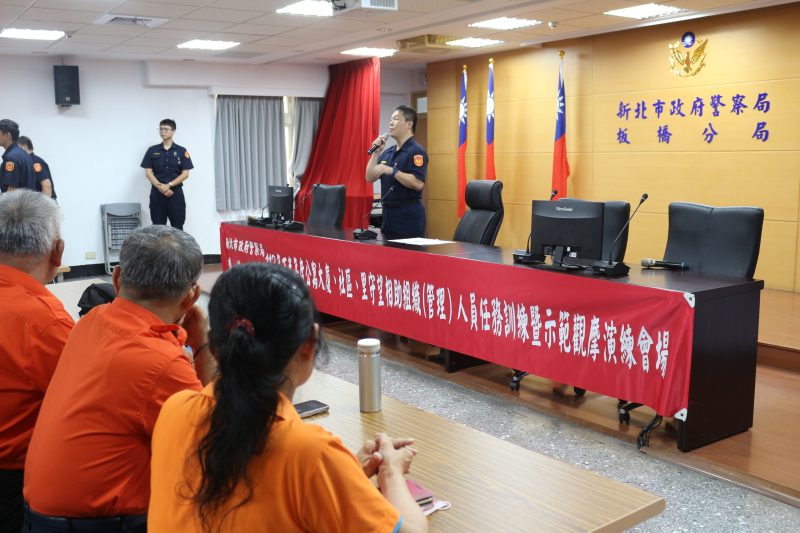 【新北訊】新北市政府警察局板橋分局為提升里守望相助隊隊員協勤技能,特別於今(29)日辦理「113年下半年守望相助隊任務訓練」,召集轄區各守望相助隊員辦理講習,分享執勤經驗、熟悉執勤技巧,提升隊員執勤安全,板橋警分局長陳宇桓至訓練會場慰勉,並且於會中頒發榮獲守望相助評核績優之單位自強里、湳興里、民安里、大豐里、後埔里、仁愛里、重慶里、華東里、溪北里等9個里對社區治安的努力與付出貢獻良多。