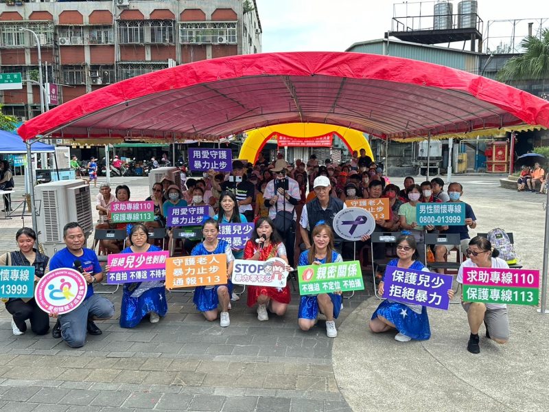 愛相隨親子成長協會今年是新北市家庭暴力防治中心初級社區預防宣導單位、為了大力推動暴力防治宣導、一連舉辦了數場的大型公益活動、當天新莊區公所社會課林姿伶課長特別前來致詞並參與宣導活動。節目開場由協會美女幹部組成首次曝光的愛相隨防暴快閃舞團,還有天使愛樂團暖場薩克斯風、銀光閃閃千歲歌舞劇團演出「我的爸爸不一樣」、20多位長者團員演出感動人心的防暴戲劇、呼籲大家一起關懷身邊的受暴者。