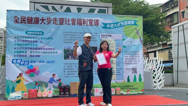 愛相隨親子成長協會與新北市全齡運動協會、共同在新莊中港大排舉辦了一場熱鬧的全民大健走活動、同步宣導家庭暴力防治、由在場300多位民眾共同宣誓、全體大聲喊出「用愛守護 暴力止步」的口號。這場活動更結合新莊區公所、元大文教基金會、台灣瘋系列自行車協會等公益團體一起動員。