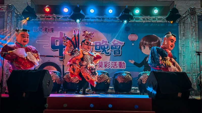 朴子市公所中秋晚會,「九天民俗技藝團」演出內容包含「神仙祈福慶豐年」、「蜈蚣鼓」、「電音三太子」及「御天戰鼓」等,在傳統陣頭匯演中注入創意編排的新能量,讓民眾在熱鬧澎湃的視聽體驗中,感受傳統文化傳承與新生的魅力!活動中間穿插300多個獎項摸彩活動,有電視、冰箱、洗衣機及iPad 等大獎,現場並發送每人20元兌換券,可於會場15個攤位使用,讓每位市民朋友都歡喜而歸。