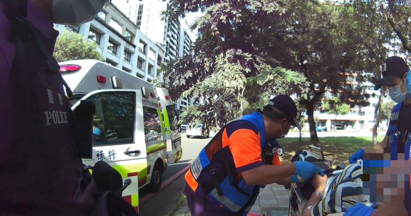 兩位員警一個眼神便心領神會,彼此默契分工,一人將老翁攙扶成坐姿並至巡邏車內拿取杯水讓老翁補充水分,一人撥打119通知救護人員到場並於車內尋找老翁相關證件以利聯繫家屬,待救護人員到場後協助將老翁送往奇美醫院並通知家屬前往醫院陪同。
