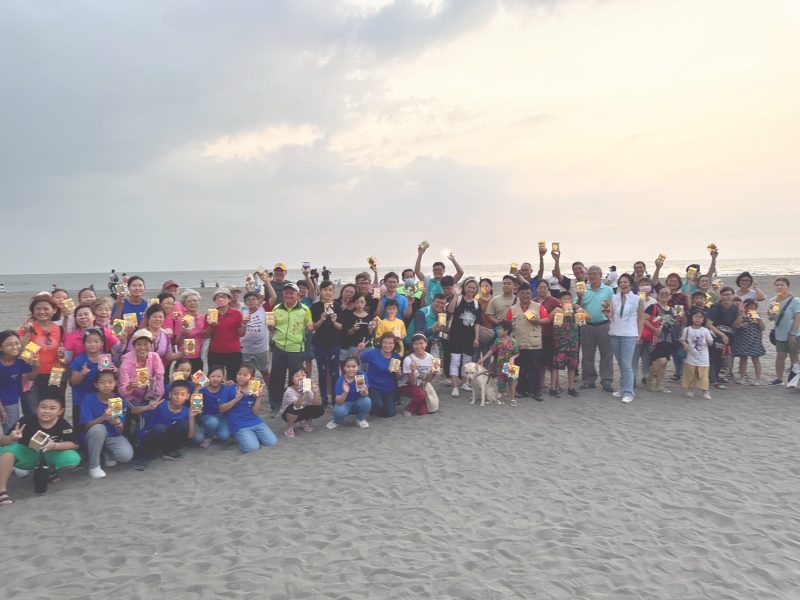 9月28日適逢蚵棚出海前夕,協會理事長侯翠玲邀請了南區濱海協辦活動的各機構與社團,一同在最美的黃昏時光,帶著自己或他人彩繪的海濱願望桌燈,朝向天際許下美好願望,並且在沙灘以人群排出400字樣,以空拍機留下美麗的黃昏與百人許願的美麗壯觀景象,藉以將美景及在地資源擴散出去,讓更多民眾認識喜樹海濱,認識這片美好沙灘所在,也知道在地的特色人文物產為何,創造一個連接過去與未來的壯觀海濱畫面,讓每一位參與者都能親近海濱風光,享受其帶來的喜悅與對地區的認同感,並透過參與者分享自各自社群的影響力,拉大活動的擴散聲量,將區域的願夢分享出去。