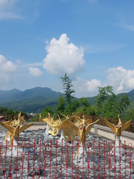 王母宮除了神明多之外,在其廣場設有九龍池及九鳳池,栩栩如生,全省寺廟少見,尤其在九鳳池旁的法海觀世音菩薩與七仙女,磁場極佳,也是修行之人可去拜訪的聖地,經過幾十年的經營,全省的分靈宮廟不計其數.每到慶典之時,回來謁靈的,更是擠滿了廣場,盛況空前。