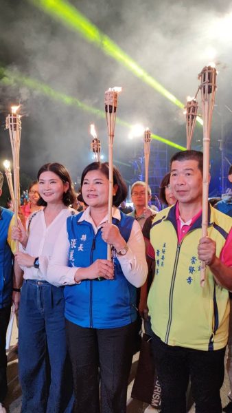 縣長張麗善、文觀處長陳璧君一同觀賞藝陣文化祭精彩的活動節目與備受注目的焰火大秀,現場民眾視覺震撼饗宴熱鬧非凡。