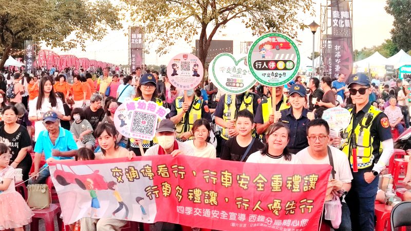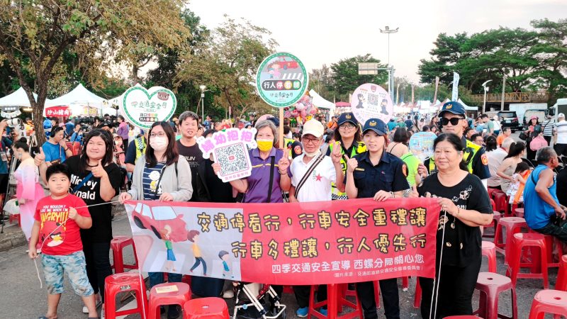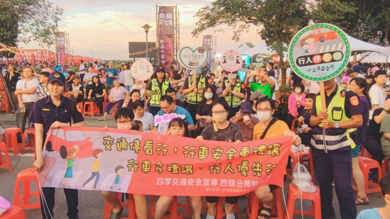 西螺分局除了加強活動周邊道路交通疏導,也進行交通安全宣導,強調「路口慢看停」之路權觀念,呼籲駕駛人無論駕駛何種車輛,務必遵守道路交通安全規則,行經路口應減速慢行,隨時注意車前狀況,以保護行人安全。