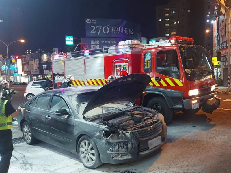 臺中市政府警察局第三分局健康派出所巡佐蔡嘉仁、警員莊振和日前晚間19時許執行巡邏勤務,於行經南區復興路與工學路口時,發現一輛黑色的自小客車停在路旁,車前的引擎蓋已被打開,而右前方的大燈處正在起火冒煙,只見車主在一旁手忙腳亂,杯水車薪地拿著瓶裝水想要滅火,員警當機立斷立即下車,勸阻車主勿再靠近車輛,同時通報消防人員到場協助,並拿出巡邏車上預置之滅火器滅火,將車頭前方竄出的火勢先行撲滅,避免意外事故擴大。
