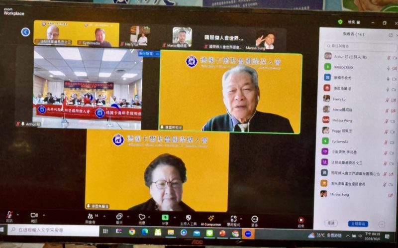 國際傑人會世界總會於2024年10月06日下午在台中總會館舉行南非約翰尼斯堡國際傑人會、德國卡爾斯魯國際傑人會及阿根廷布宜諾斯艾利斯國際傑人會成立大會、儀式由總會長吳毓苹主持,秘書長劉天倫擔任司儀,以視訊方式與各新分會連線舉行,世界總會出席貴賓包括前總會長柯雨財、陳國書;候任總會長賴文針、副總會長吳睦野、林文發、游明桂;理事彭金鑾、陳國寧、洪绮翎、朱芯慧;財務長郭阿月、特助林惠如、黃寶玉、張莉緹;及加拿大總會總會長鄭秀明、美國芝加哥和平會創會長江玲珠、洛杉磯羅省會會長曹靜永;西班牙馬德里會創會長李志俊及中華民國總會副總會長區尚彬、秘書長詹永良、大愛會常務監事郭忠慶。澳洲總會總會長盧金煙以視訊方式參加