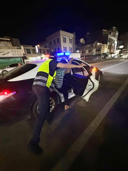 崙背分駐所警員林芸蔓及劉瀚元晚間8時許執勤行經崙背鄉南光路時,碰巧看見廖男騎車摔倒,警方見狀立即上前關心。