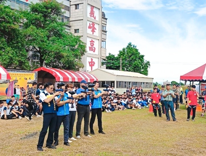 雲林縣警察局少年隊、雲林縣學生校外生活輔導會及義峰高中共同辦理「113年校園安全盃『反黑、反毒、反霸凌』漆彈錦標賽」活動,今(24)日在義峰高中熱鬧登場,本次活動由該縣各公私立高中職學生組隊參加,共計有30隊近200人共同參與,現場氣氛熱鬧非凡,並充滿著年輕氣息及熱情朝氣。