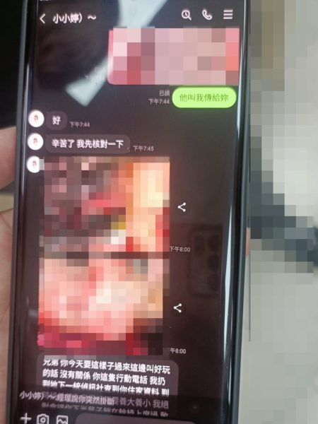 隨後「小小婷」女網友就傳了2張血腥照片恫嚇張男,女網友向張男說,你今天要這樣子過來這邊叫好玩的話沒有關係,你這隻行動電話我扔到地下一通徵信社查到你住家資料,最好保證你家沒有養大養小,我絕對讓你下輩子躺在輪椅上渡過。