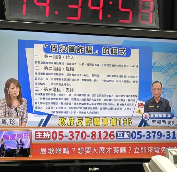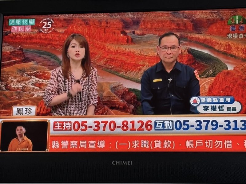 嘉義縣警察局有鑑於詐騙手法不斷推陳出新, 為了提高民眾對詐騙手法的警覺性, 促進安全與和諧的社會環境, 局長李權哲特別親自至本縣信吉電視台, 透過現場直播方式向民眾宣導最新反詐騙知識, 講解詐騙真實案例, 進行故事性論述, 讓民眾身歷其境感受遭詐狀況, 呼籲民眾提高警覺, 守護個人財產安全。