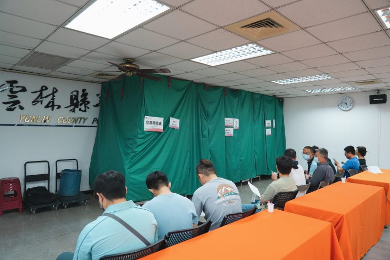 雲林縣警察局為照護員警身體健康,特別商請中山附醫專業醫療團隊進駐,幫同仁進行各項檢查,項目包含心肝腎功能、血液尿液常規檢查、心電圖、胸部X光、眼底攝影及彩色超音波等檢查,提供一站式健檢服務。