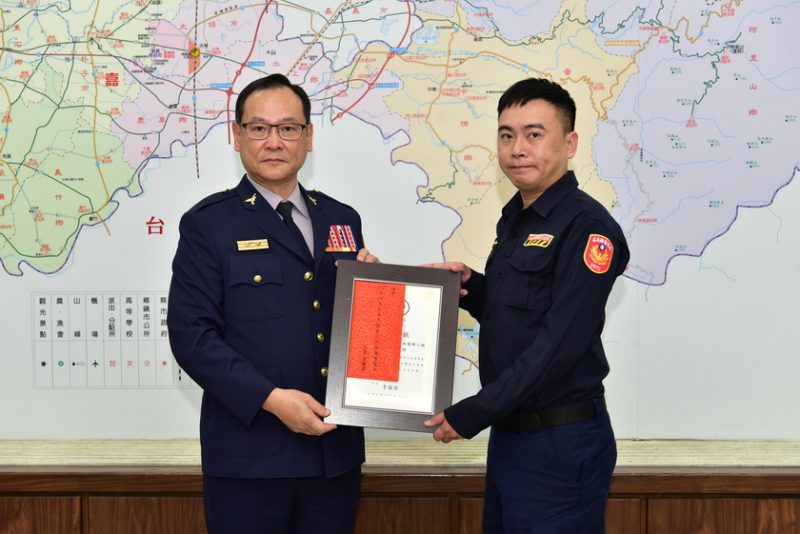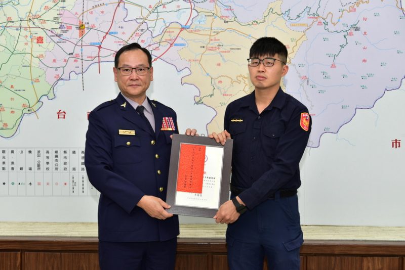 一、中埔分局番路聯合所所長莊政峯、警員盧巡閣:少女跳潭輕生,恰逢所長晨運偕線上警力成功搶救寶貴性命。
