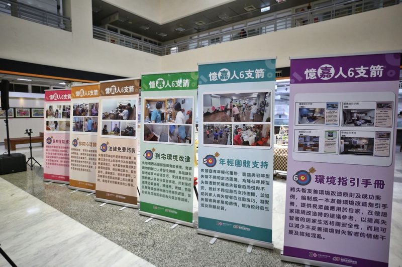 活動現場也邀請「憶嘉人6支箭」受益案家來分享,翁媽媽是失智者患者,因為腦部受病變損壞,導致對環境判斷力發生障礙,其媳婦吳小姐分享婆婆家裡的廚房在陽光西曬時會有強烈的光線,經常造成翁媽媽有幻覺的現象,總是覺得有人在偷窺她,因此經常反覆要鎖窗戶,透過「到宅環境改造」經過專業人員到宅評估居家失智友善環境後,協助安裝窗簾,遮蔽西曬光線,翁媽媽幻覺狀況即改善很多;曹哥是年輕型失智症者,曹太太分享先生在發病後自已無法適應,連孩子也不能理解爸爸的改變,但參加「年輕型失智支持團體」後,透過家庭支持活動,孩子們瞭解「爸爸真的生病了」,一家人在互動過程中敞開心胸包容並打破誤解,家人的感情更加凝聚。