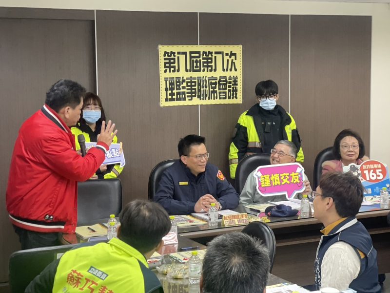 會議中,先由土城分局分局長陳建龍上台向各位理監事們表達感謝之意並說明近期一些詐騙手法,接著由偵查隊孫利生小隊長上台分享近期一些詐騙手法,尤其許多工廠內皆有聘請外籍移工,近日常有不肖人士趁外籍移工工作期滿欲回國時,收購其名下的帳戶當作人頭戶,讓員警後續偵辦更加困難,故特別請監理事們能主動約制其廠內外籍移工及請仲介幫忙宣導,避免有人頭帳戶產生,在廠的企業家們也紛紛表示贊同,願意全力配合,一同防制詐騙事件發生,而在意見交流時,大家也紛紛提出有關詐欺的問題,及針對城市迅速發展車流量增加的交通問題等提出討論,土城分局長陳建龍一一解決大家的疑惑,宣導活動在一片歡樂的氣氛下畫下完美的句點。