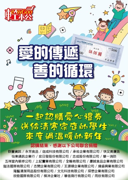為展現企業社會責任與公益合作的力量,台南在地商家輕鬆購五金百貨與26家合作廠商攜手,於上月宣布共同捐贈總值20萬新台幣的禮券,幫助永康國小、安順國小、新市國小、三村國小等學校約400位清寒學生改善生活條件,支持他們在學業上更好地發展,並於昨日(1/16)將全數關懷禮券發送至學校。