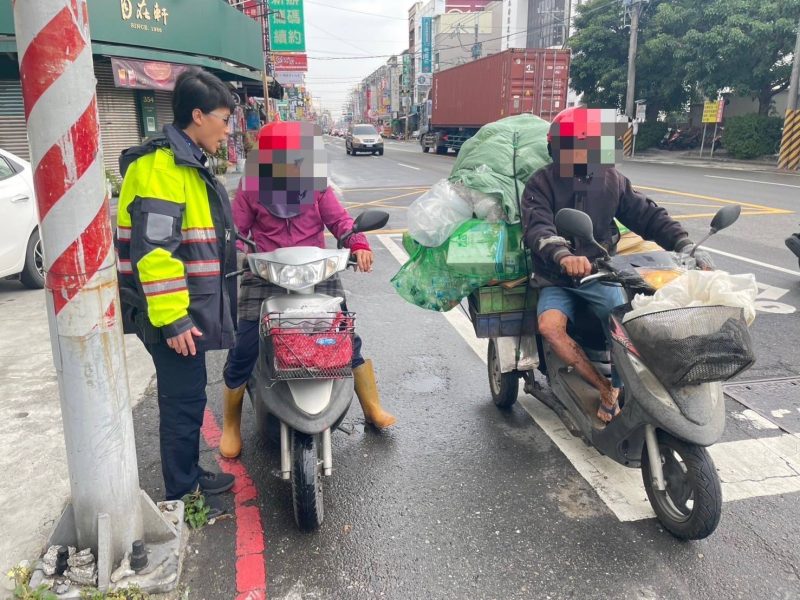 近日因寒流來襲天氣寒冷,執行巡邏勤務警員簡莘蓁、劉名勝及勤區查察警員曾煜誠、實習生余叡誠接獲報案後立即兵分二路出動,分別就老翁所使用之交通工具、穿著特徵沿著大灣路搜尋,途中在大灣國小前發現1名老翁騎車緩慢,載有回收物品且有尋路之行為,經員警上前關心詢問確認為陳翁,馬上告知林婦發現陳翁蹤跡,讓擔心陳翁迷途的林婦心中大石落地。