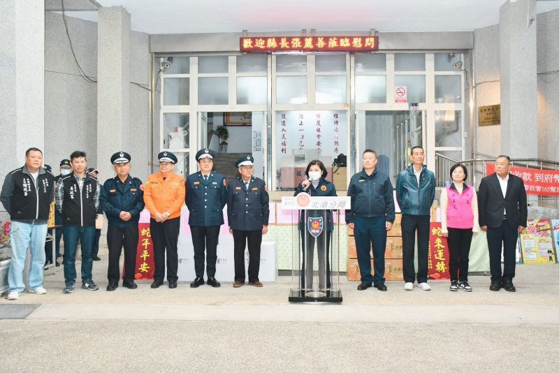 張縣長於北港分局特別感謝民防團幹部、吳董事長、雲林縣警察之友會、蔡咏鍀副議長及蕭美文鎮長對於警察工作的支持,並肯定警察同仁在過去一年來的努力,在肅槍、打詐、查緝毒品、幫派等方面都獲得佳績,成果耀眼。張麗善表示,春節是團圓歡慶的節日,也是鄉親走春祈福的假期,縣內眾多廟宇在春節期間都是熱鬧非凡,尤其北港朝天宮及武德宮,北港警察分局已規劃詳細的交通動線,請民眾多加查詢利用,另外雲林縣政府為讓民眾重溫早年農村春節熱鬧歡樂氛圍,從大年初一至初三在斗南順安宮、土庫馬光順安宮舉行「歡喜來過年,社富民安」活動,邀請大家一起來參與。