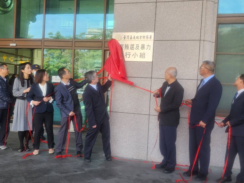 臺灣嘉義地方檢察署及轄區縣(市)警察局、調查站及政風處,與全國各地同步,於今(22)日早上10點,在地檢署一樓大廳外,由檢察長蔡宗熙、謝雯璣主任檢察官、姜智仁主任檢察官、陳靜慧主任檢察官,與嘉義縣警察局副局長許益祥、嘉義市警察局長沈炳信、嘉義縣調查站主任謝檔明、嘉義市調查站主任魏男烜及嘉義縣政府政風處長郭建毅、嘉義市政府政風處長劉孟政,共同舉行「查察賄選及暴力執行小組」揭牌儀式,正式全面啟動今(114)年度農漁會選舉查察賄選工作,並共同對外宣示反賄及查賄制暴決心,隨後在本署三樓會議舉辦「嘉義地區農漁會選舉查察會議」。