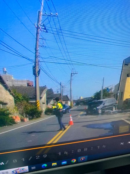 雲林縣警察局西螺分局二崙分駐所警員黃柏愷於加強重要節日安全維護工作期間114年1月29日13時26分許擔服備勤勤務,接獲通報雲林縣二崙鄉來惠村惠來路14號有交通事故,自撞並且車輛起火燃燒,且撞斷二崙鄉公所之電桿,佔據車道,因當時車流量不少,造成交通壅塞,影響東西向車輛交通;該處為村莊內交通要道,為避免事故車輛影響人車安全,現場警方迅速處理車禍,並立即通知吊車將車輛及斷裂之路燈排除,並實施交通指揮,疏導行經車輛,以維護現場安全,後續交通立即恢復順暢,來往民眾十分肯定警員作為。