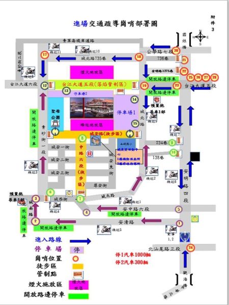 安南區正統鹿耳門聖母廟將於2月8日(星期六)晚間,舉辦「2025年迎春牛及高空施放煙火秀」等民俗文化活動,預計將吸引大批觀賞人潮。臺南市政府警察局第三分局動員警、民力390餘人,於17時起陸續於周邊各路口實施交通疏導,並於17時30分開始全面管制汽車進入土城聖母廟廣場;呼籲民眾注意行車動線,並配合警方管制疏導作為,以利車流順暢。