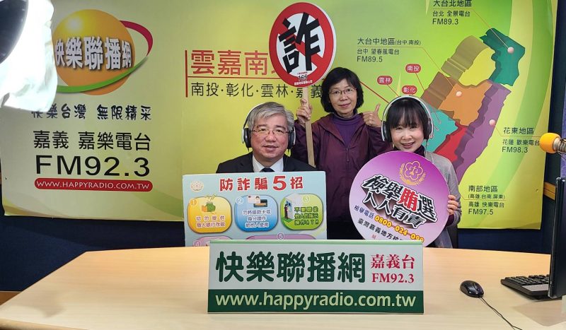 有鑑於國內詐騙情形依然猖獗,為提高民眾防詐意識,避免成為詐騙被害人,嘉義地檢署蔡宗熙檢察長於日前親自前往嘉義正聲電台及快樂聯播網嘉樂電台宣導,希望透過電台無遠弗屆的傳播力,讓民眾知悉詐騙手法,提高警覺,避免被騙。