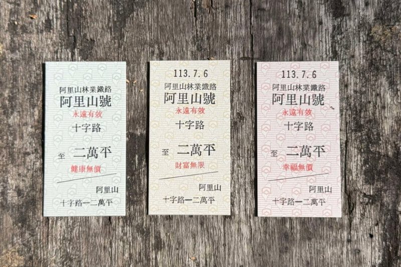 鐵道迷注意囉!林鐵及文資處自113年42號隧道竣工後火車行經十字路至二萬平路段,十字路為林業鐵路與部落古道交會處,二萬平則為海拔2,000公尺看雲海處,本組設計套票乘載了42號隧道工程的偉大,更象徵「十二萬分的美好」,獨家設計極具收藏價值,勢必成為鐵道愛好者間的新話題!首波十字路至二萬平紀念車票套組將於近期正式開賣,套票一式三款,張張皆為手工精心印製,票面文字寓意深厚,分別為十二萬分幸福、財富及健康。