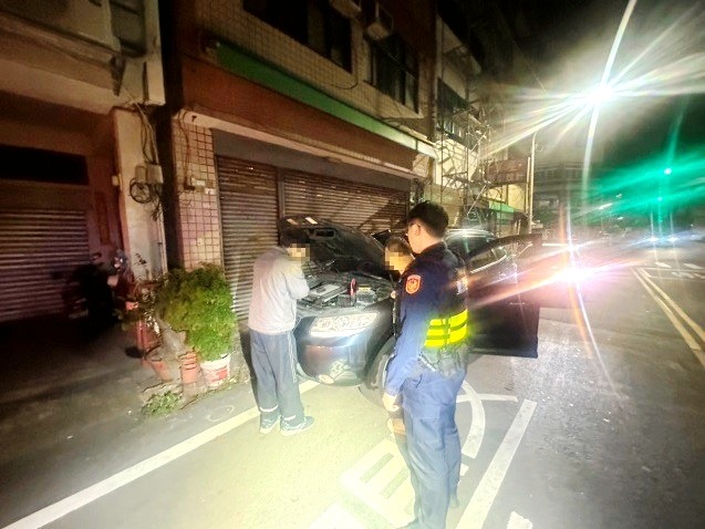 員警到場時,該車之駕駛鍾男焦急地向警方表示,因平時較少駕駛該車輛,導致行駛上路後車輛突然停在半路熄火,多次嘗試重新發動均未果,男子判斷應該是電瓶有問題,又正值假日凌晨時分,修車廠均未營業,無法排除故障及移車。警方見狀先將巡邏車停於故障車後方開啟警示燈,並協助將車輛移置路旁,同時協助聯絡計程車到場搭電排除故障,男子對於警方的即刻救援表達由衷感謝,大讚警方熱心助民。