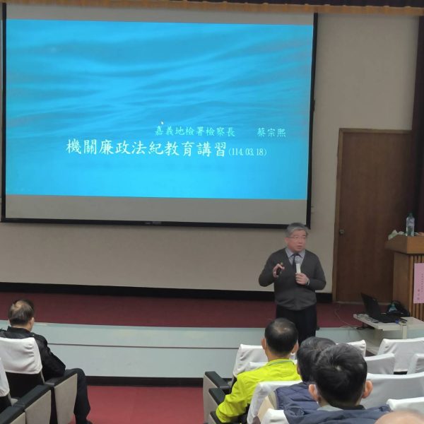 中油公司煉製研究所日前透過嘉義地區政風業務聯繫協調中心邀請嘉義地檢署蔡宗熙檢察長以小額採購(含出差費、加班費)、反詐騙宣導、廉政倫理規範及相關違法案例為題,擔任昨(18)日「114年廉政法紀教育業務講習」講座,以提升員工反貪瀆意識,認同政府打擊貪污的政策,營造貪腐零容忍的職場氛圍。