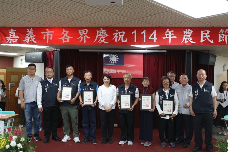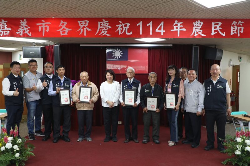 嘉義市各界於昨(11)日上午10時在嘉義市農會舉行慶祝114年農民節大會,會中共計表揚126位傑出農民,黃敏惠市長頒發獎狀予28位協助農業基層建設有功人員,並致贈紀念品,感謝農民為農業付出的貢獻與辛勞。