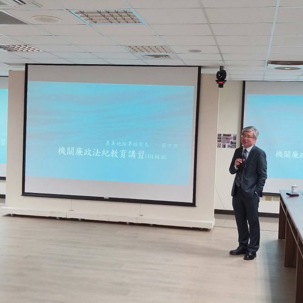 嘉義地檢署蔡宗熙檢察長於昨(16)日上午,親至交通部公路局南區公路新建工程分局(下稱新工南分局)擔任講師,暢談廉能法治思維與識詐技巧,響應該分局所辦理114年度「公路監理攜手廉網,工程運輸誠載幸福」廉政宣導活動。蔡檢察長以實務上真實發生之案例傳授廉政風險與管理、廉政倫理規範、公務員貪瀆要件、圖利與便民、最新詐騙手法等議題,並按公路局機關屬性強化工程採購弊端及採購人員倫理準則要件之解析。