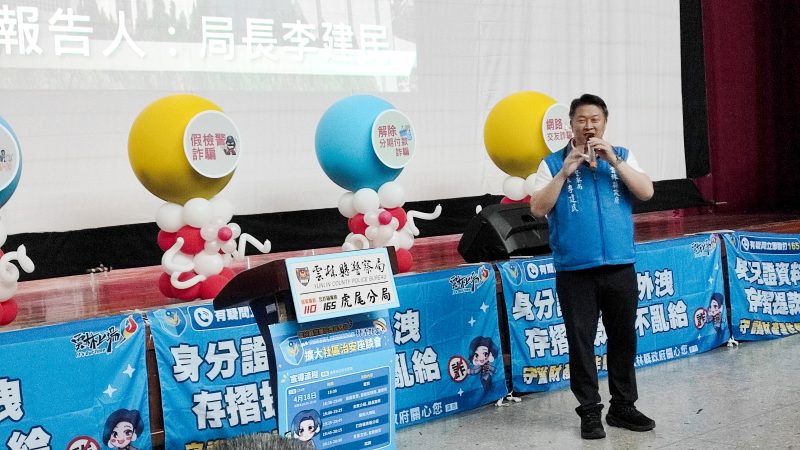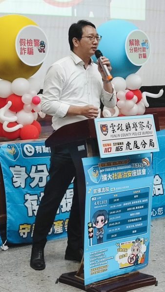 李建民局長會中講解「打詐儀表板」,期待與會者不管是現在或未來,都能守護自己錢財,觀念正確就不怕詐騙手法的日異翻新,另外虎尾警分局由車手殺手副分局長李志文擔任宣導大使,以實務經驗串場宣導5大詐騙手法,包括假網路拍賣(購物)、假投資、解除分期付款詐騙(ATM)、假愛情交友、假冒親友詐騙等,提醒民眾提高警覺,避免受騙上當。