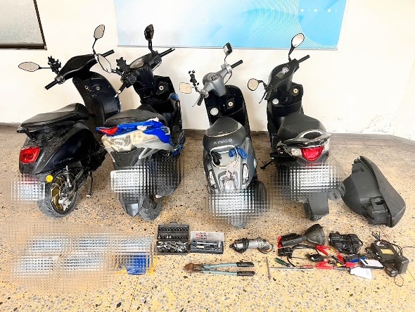 虎尾分局面對高鐵雲林站周邊,陸續發生的機車失竊案件,甚至1天接獲3、4部機車失竊的報案紀錄,無不上緊發條,因案發現場人煙罕至,調查耗時,竊嫌除專挑偏僻的地方,食髓知味看準停放此不收費的地點皆為停放多日的機車,被害人發現機車失竊已是多日後,更添查緝難度,專案小組日以繼夜的埋伏、巡邏於高鐵站附近,蛛絲馬跡都不放過,終鎖定廖姓(男、92年次)犯嫌,然因機車失竊數量過大,專案小組研判21歲廖姓男子必有共犯,為求一網打盡,除輪班埋伏守株待兔外,似也無他法,就在專案小組精疲力盡之際,竊嫌再度竊取機車,專案小組尾隨至竊嫌巢穴,現場查獲3部機車、5面車牌、拆車工具1批,另發現廖男父親(73年次)涉案情節重大亦拘提到案,經清查共計涉及17起機車竊盜案件,全案尚有一名失聯移工潘姓女子在逃,除將廖姓父子依連續竊盜罪,並聲押獲准外,警方持續追查贓物流向及在逃共犯。
