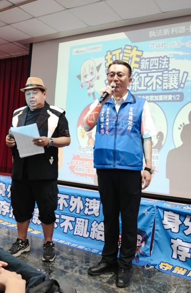雲林西螺警分局於(22)日在西螺鎮農會舉辦打詐行動月暨擴大社區治安會議,邀請轄區民意代表、里鄰長及轄區民眾逾1000人參加,並邀請知名藝人「黑面」現身主持一同打詐,縣警察局李局長建民率雲林縣警察局團隊暨西螺分局分局長閻百川及各組、隊、中心主管皆列席,並邀請縣長張麗善、議長黃凱及地檢署檢察長黃智勇等貴賓蒞臨共襄盛舉,活動一開始便由張縣長邀請與會重要來賓一同進行氣球立牌爆破儀式,為會議揭開序幕。