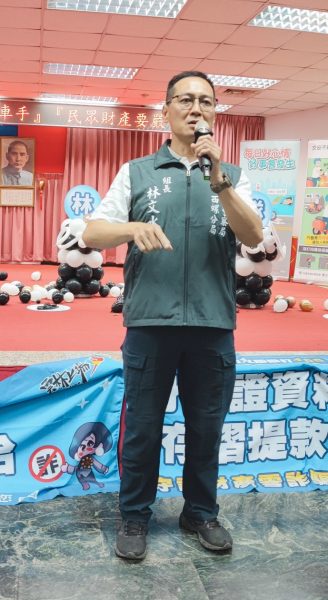 接著由第五組組長林文水針對轄區發生交通事故路段、肇事原因分析向民眾說明,呼籲民眾遵守交通規則,注意用路安全,促使民眾增加交通安全意識。