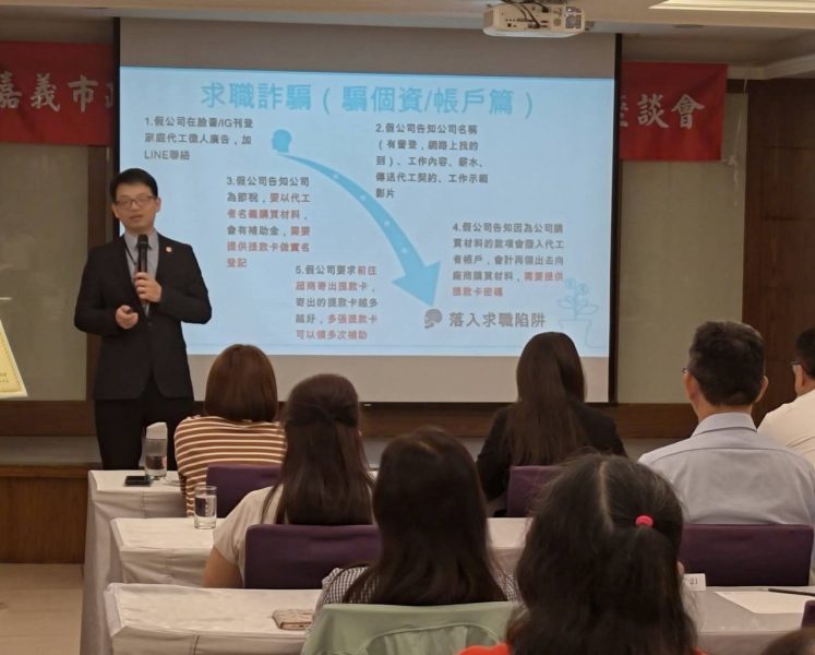 嘉義地檢署江金星主任檢察官昨(22)日藉嘉義市政府警察局辦理「114年社會安全防護座談會」時機,以綠能產業、公共安全、企業社會責任及反詐騙宣導為題,向與會的旅宿、交通、餐廳、在地商店等業者暢談企業誠信治理與廉能價值關聯性,並以實務上常見之觀光、旅遊詐騙手法為例,提醒業者務必妥適處理或運用業者及旅客個資,防止機敏資料被竊取、竄改、毀損、滅失或洩漏,造成消費權益受損。