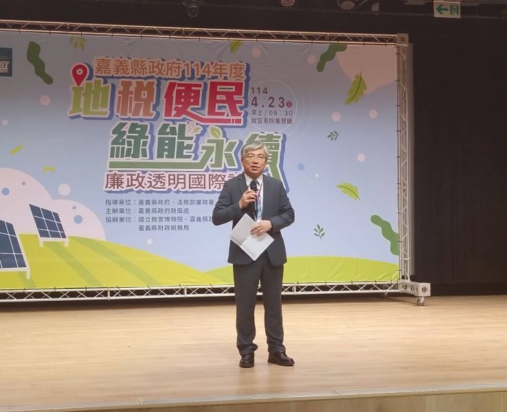 嘉義地檢署蔡宗熙檢察長於昨(23)日參與嘉義縣政府,在故宮南院舉辦之「地稅便民、綠能永續」廉政透明國際論壇,活動由嘉義縣翁章梁縣長主持,並有法務部廉政署南部地區調查組許嘉龍組長、國立故宮博物院南部院區彭子程處長、經濟部能源署廖士煒代理組長、臺灣透明組織葉一璋理事長、義守大學蕭宏金教授、太陽光電發電系統商業同業公會廖禎松理事長、嘉義縣地政士公會何星儒理事長等貴賓出席,邀集產官學專家學者與業界代表共同交流學習綠能、地政與財政等民生議題,期有效凝聚共識。