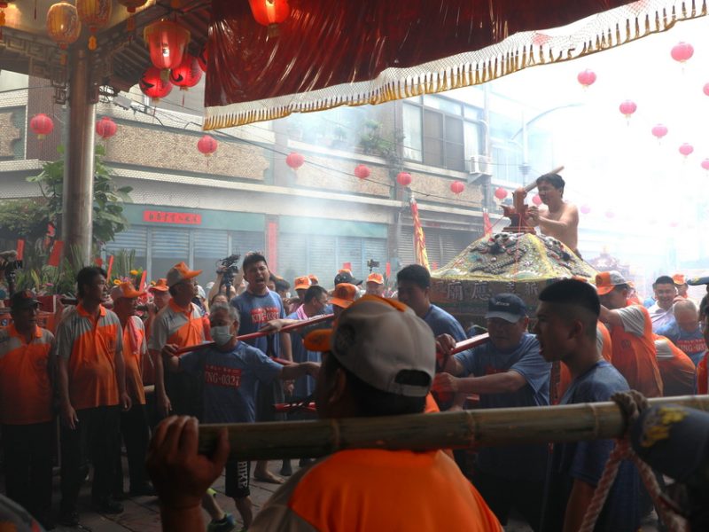 布袋新塭嘉應廟今(24)日舉辦獨特的「衝水路、迎客王」活動,這項罕見的儀式至今已有兩百多年的歷史,是沿海地區一年一度的宗教文化盛事,吸引各地信眾及神轎前來共襄盛舉。