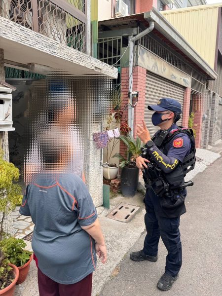 經員警鍥而不捨於成功路上查訪後,終於找到黃女住處,並由其母親確認身分無誤,惟在員警查訪過程中,身在佛堂的黃女(64年次)突起身離開往馬路上走,且疑似無法辨識交通號誌,急欲穿越斑馬線返家,員警為避免用路人危險,立即機警將車輛擋下並勸導黃女至路旁等待,待2名員警會合後,欲使用警車載送返家,但黃婦不願意配合,只好駕駛巡邏車跟隨在後,護送安全返家。