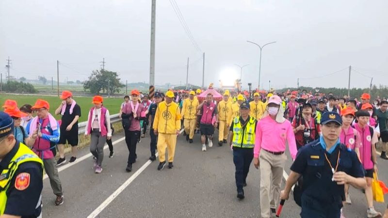 信眾們腳程不同,員警準備大聲公引導民眾行走路線並提醒落後的民眾:「慢慢走沒關係,注意腳下、注意安全最重要!」警方也隨時提醒大家:「貴重的物品要保管好,防竊防盜很重要!」臺西分局表示,白沙屯媽祖進香的特色在於沒有固定路線,進入雲林縣後,可能選擇省道台17線或153線為主要進香路線,為維護行人安全、確保車流順暢,雖未實施嚴格交通管制措施,仍部署多名警力緊隨媽祖鑾轎前後,採機動調度在沿線各路口實施交通疏導。警方指出,白沙屯媽祖進入雲林縣可能是深夜,為避免大量人車跟隨媽祖鑾轎而造成塞車困擾,並維護道路交通安全,提醒香燈腳除須遵守警方指揮,盡量靠邊行走避免進入快車道,民眾也可使用「白沙屯GPS」APP即時掌握媽祖鑾轎位置。